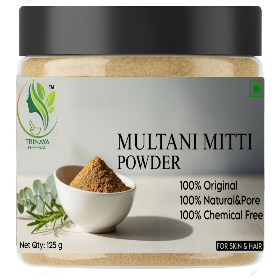 Multani Mitti is a classic deep-cleansing face pack powder that detoxifies the skin and absorbs excess oil. It helps unclog pores, remove impurities, and give an instant cooling effect. Ideal for oily and acne-prone skin, this mineral-rich clay leaves your skin visibly fresh, matte, and revitalized.